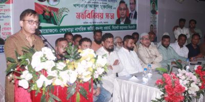 সোনাতলা বাজারে খন্দকার আব্দুল মুক্তাদিরের সমর্থনে ধানের শীষের লিফলেট বিতরণ