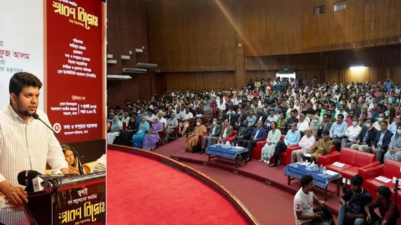 তথ্য সচিব মাহবুবা ফারজানার সভাপতিত্বে অনুষ্ঠানে শুভেচ্ছা বক্তব্যে আইন উপদেষ্টা আসিফ নজরুল বলেন, “জুলাই কখনো বেহাত হবে না। বিচার চলছে, বিচার দৃশ্যমান। এই বিচার গ্রহণযোগ্য করতে হবে।” আসন্ন জাতীয় সংসদ নির্বাচনের আগে ’খুনিদের’ বিচার সম্পন্ন হবে বলেও তার আশা।