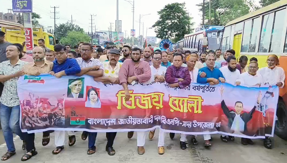 জুলাই গণঅভ্যূত্থানের ধারাবাহিকতায় ৫ আগস্ট আওয়ামী ফ্যাসিবাদের পতন ও ছাত্র—জনতার বিজয়ের বর্ষপূর্তিতে সিলেট সদর উপজেলা বিএনপির উদ্যোগে বিজয় র্যালি অনুষ্ঠিত হয়েছে।