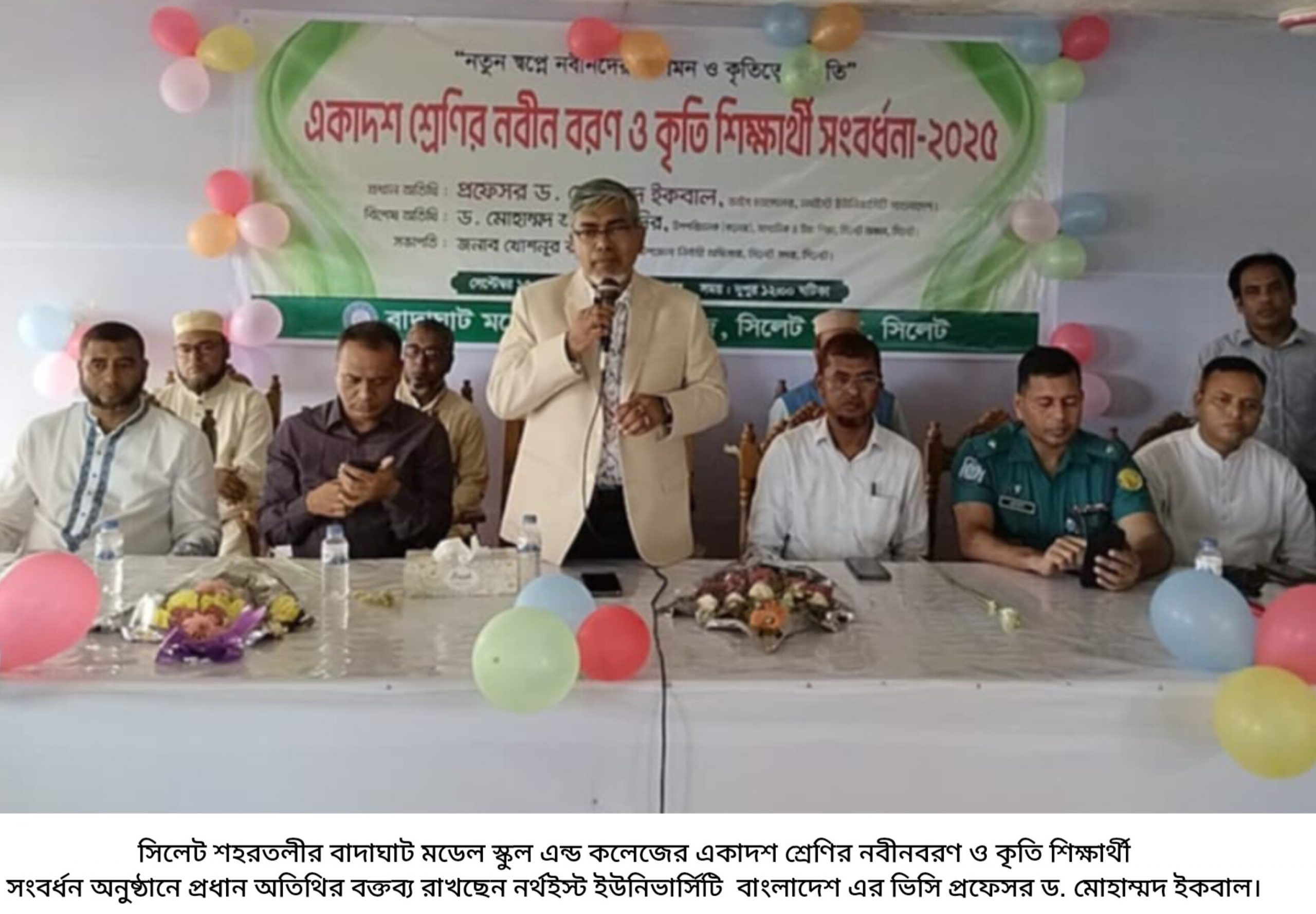সোমবার (১৫ সেপ্টেম্বর) সিলেট শহরতলীর বাদাঘাট মডেল স্কুল এন্ড কলেজের একাদশ শ্রেণির নবীনবরণ ও কৃতি শিক্ষার্থী সংবর্ধন ২০২৫ এর অনুষ্ঠানে প্রধান অতিথির বক্তব্যে এসব কথা বলেন।