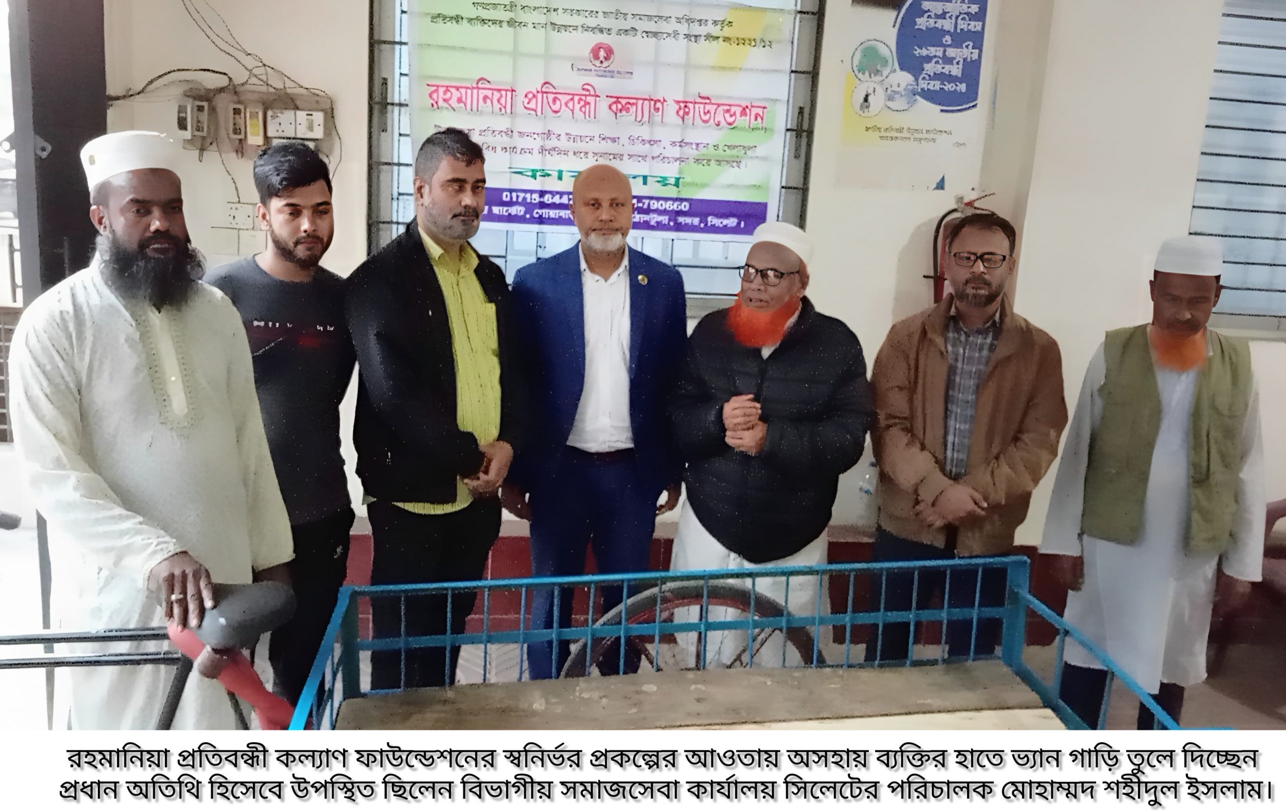 রহমানিয়া প্রতিবন্ধী কল্যাণ ফাউন্ডেশনের স্বনির্ভর প্রকল্পের আওতায় অসহায় ব্যক্তিকে ভ্যান গাড়ি উপহার