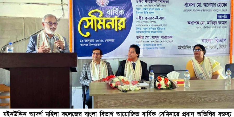 তিনি গতকাল ১৯ জানুয়ারি সোমবার সকালে সিলেট মহানগরীর শামিমাবাদস্থ কলেজ মিলনায়তনে মইনউদ্দিন আদর্শ মহিলা কলেজের বাংলা বিভাগ আয়োজিত দিনব্যাপী বার্ষিক সেমিনারে প্রধান অতিথির বক্তব্যে এসব কথা বলেন।